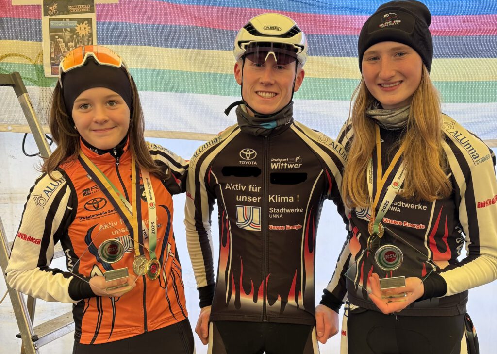 Titelregen für den RSV Unna bei der Landesmeisterschaft Cyclocross – Mila Stier und Josefine Wendel holen sich den Titel; Tom Wendel wird Vizelandesmeister