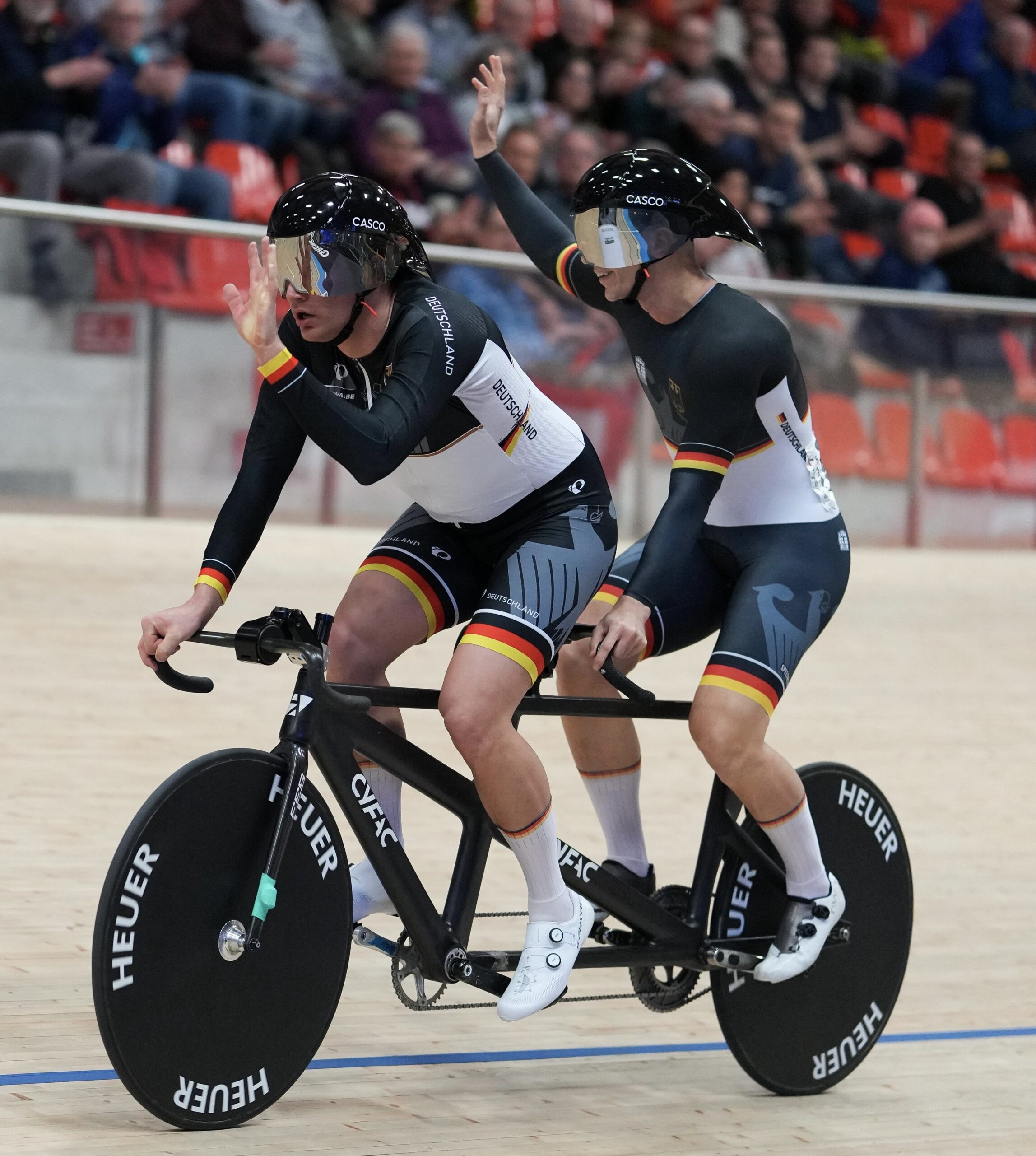 Unna. Am 12./13. Dezember 2025 hat es bei der Track Cycling Challenge auf der Radrennbahn in Grenchen (Schweiz) mehrere deutsche Spitzenplatzierungen gegeben. Unter anderem hat das deutsche Para-Cycling-Tandem, bestehend aus Thomas Ulbricht und seinem Piloten Lucas Liß,  sich bei den Wettkämpfen den Sieg im Sprint und im 1000-Meter-Zeitfahren gesichert. Im Sprint-Turnier qualifizierte sich das Duo mit einer Zeit von 10,410 Sekunden über die 200m als Dritter. Nach einem knappen Halbfinalsieg gegen das zweite deutsche Tandem Lembeck/Förstemann – die leider im zweiten Lauf verletzungsbedingt ausschieden – profitierten Ulbricht/Liß im Finale vom Nichtantritt der Weltmeister aus Großbritannien und gewannen Gold. So wurde ihnen der Sieg zugesprochen. Tags darauf waren sie auch über 1000 Meter nicht zu schlagen und waren schon im Qualifikationslauf am schnellsten. Mit einer herausragenden Leistung von 1:04,096 Minuten im Endlauf verwiesen sie ihre Konkurrenten aus Irland und der Schweiz deutlich auf die Plätze zwei und drei. Dabei konnten sie ihre Bestzeit abermals unterbieten. Lucas Liß, der ehemalige Scratch-Weltmeister und Polizeikommissar der Polizei NRW, betonte die gute Vorbereitung, äußerte jedoch auch Verbesserungswünsche hinsichtlich Materials und Sportförderung: „…,dass es nun so gut ausging, damit war aber trotzdem nicht zu rechnen.“